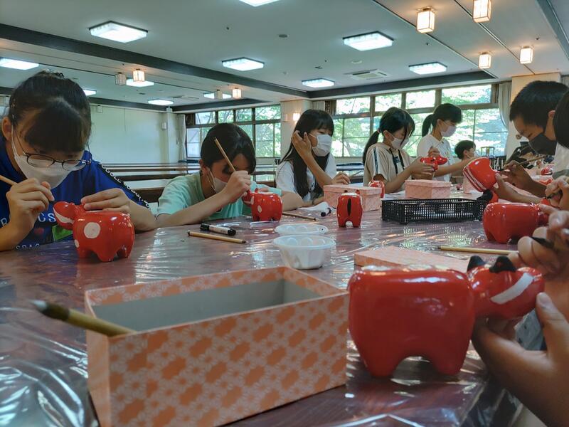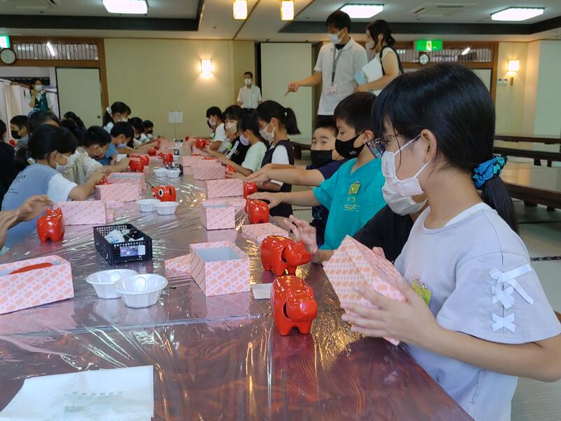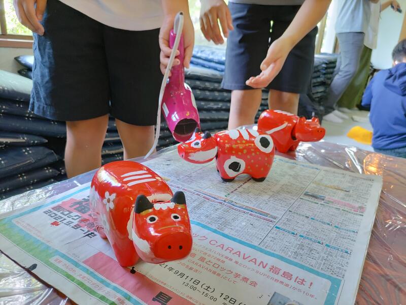 赤べこの絵付け体験に来ました。想像していたよりも、大きくて絵付けのしがいがありました。