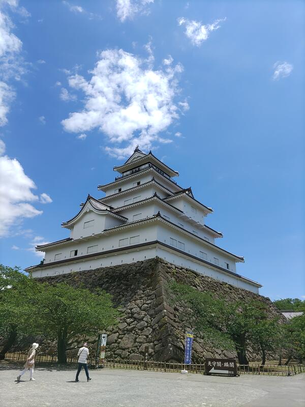 赤べこの絵付け体験の後は、鶴ヶ城見学です。青空に天守閣が映えていて、荘厳な感じがしました。