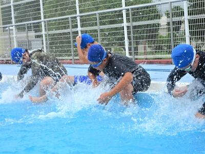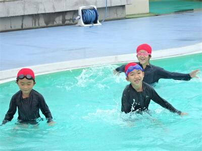 【6年生】いよいよ学校でのプールも最後になります。6年生にとっては、上松山小学校で入る最後のプールです。時折小雨がちらつく中でしたが、子どもたちは最後のプールを楽しんでいました。