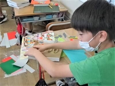 【5年生】1・2枚目の写真は、図工の時間の様子です。「夏休みの思い出を伝えよう」ということで、夏休みの出来事を思い出しながら描いています。楽しかった思い出を振り返ることも、大切な思い出作りになりますね。