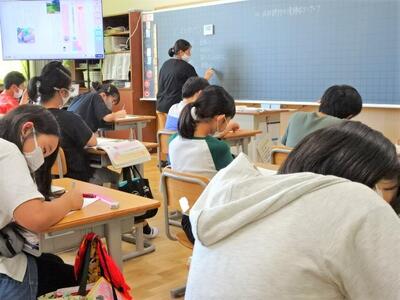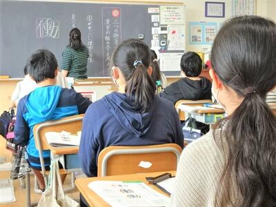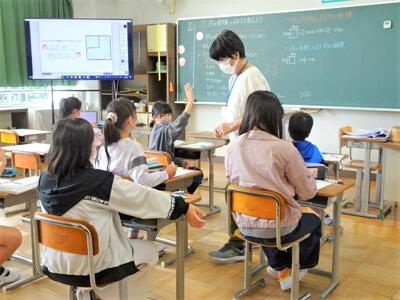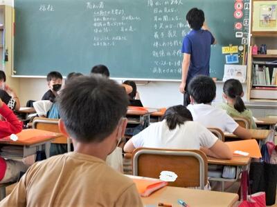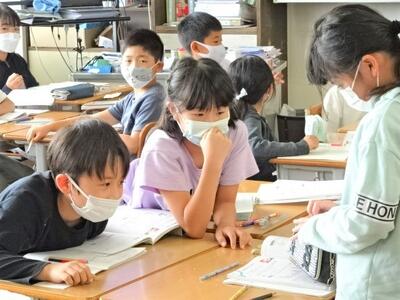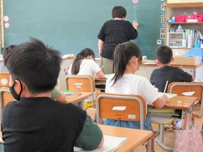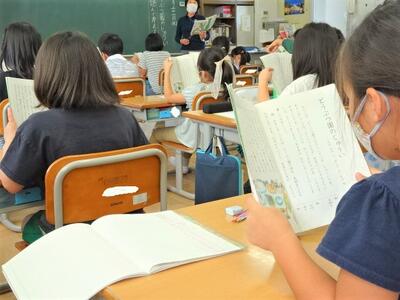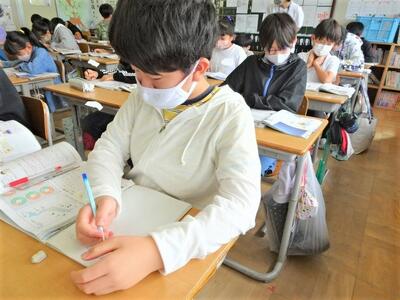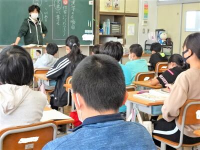 【4年生】1枚目の写真は、国語の「ごんぎつね」の学習の一場面です。4年生の学習の中では長文の教材ですから、しっかりと音読ができるまで読み込んだり、一場面ごとに登場人物の心情を読み取ったりしていきます。教科書の挿絵も、子どもたちが時代背景を想像できるように工夫されていますね。