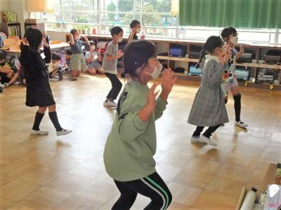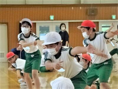 【5年生】運動会の表現の練習が少しずつ行われています。初めて高学年の仲間入りをして5年生は、本校の高学年恒例の種目に挑戦します。これまでも先輩方を見てきたこともあり、すでに動きを理解しています。今日は、一つ一つの動作が、どんな意味があるのかを聞きながら体いっぱい表現していました。