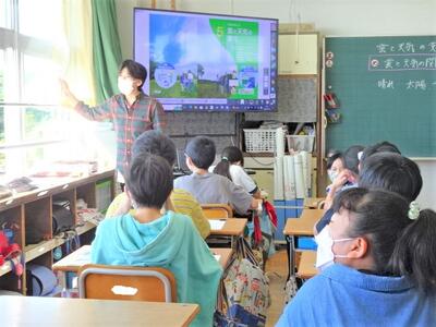 【5年生】1枚目の写真は、理科の時間の一場面です。カーテンを開けて外の空の様子を確認しているところです。「雲と天気の変化」という新しい単元に入りました。これから、雲の形や量、動きの着目して天気の変化と関連付ける学習をしていきます。