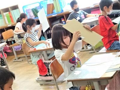 【2年生】1枚目の写真は、生活科の「うごくうごく わたしのおもちゃ」の単元の学習の様子です。うごくおもちゃも、だんだん仕上げに近づいてきました。今日は、動き方を確認して、しっかり動くように調整して仕上げていく時間でした。