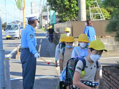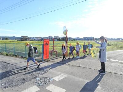 9月30日(金)まで、秋の全国通安全県民総ぐるみ運動でした。先週に引き続き、今週も先生方のよる朝の交通指導を実施しました。子どもたちも、しっかりと右側一列の歩行を実践しており、交通安全の意識が高まりました。交通指導員さん、交通安全パトロール隊の皆さん、地域の旗当番の皆さん、いつもありがとうございます。これからも、どうぞよろしくお願いいたします。
