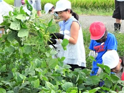 【2年生】1枚目の写真は、音楽の時間の一コマです。トライアングルをもっているのがわかりますね。「いい音 みつけて」という題材の学習で、トライアングルの他に、タンバリンやすず、ウッドブロックなどを使って、様々な音のリズムを奏でていました。