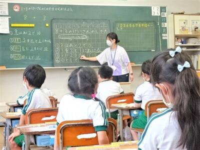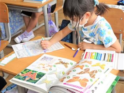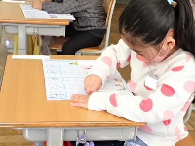 【1年生】1枚目の写真は、国語の時間の様子です。ひらがなの学習が終わり、今はカタカナの習得に励んでいます。今日は「ユ」や「ヨ」の書き方を学習して、練習帳を使って練習を行っていました。子どもたちはすごいです。あっという間に覚えてしまいます。