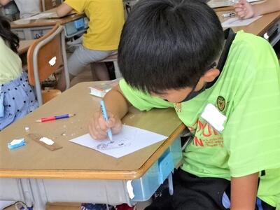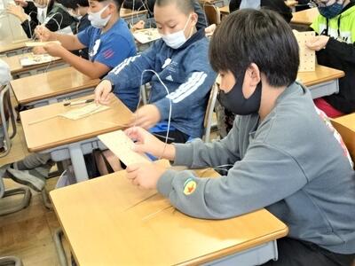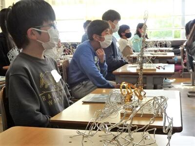【5年生】1枚目の写真は、図工の時間の様子です。新しい教材の学習に入りました。「立ち上がれ!ワイヤーアート」です。針金を曲げたり立たせたりして形を変えながら、作品を作っていきます。どんな作品ができるか楽しみです。