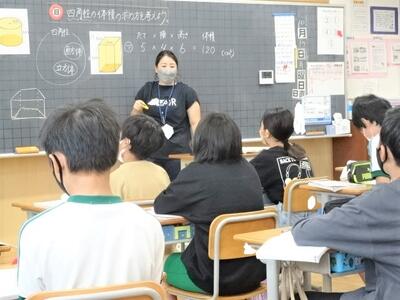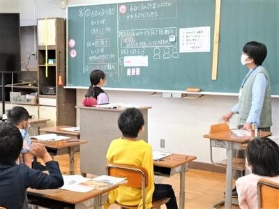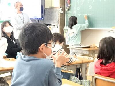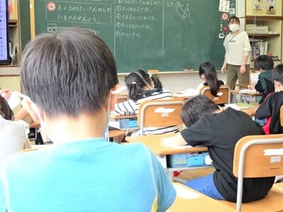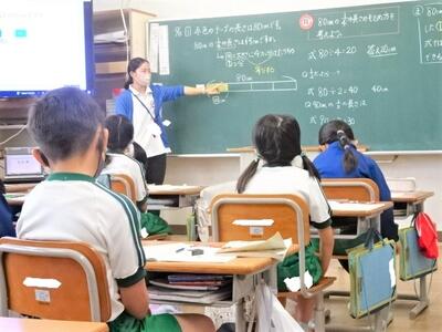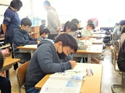 【5年生】1枚目の写真は、算数の時間の様子です。「分数と小数、整数の関係を調べよう」という単元です。ここの単元のポイントは「分数倍」を理解することで、5年生の算数の学習の中でも難しい内容といえます。2枚目の写真にありますように、5年生の集中力に期待しています。