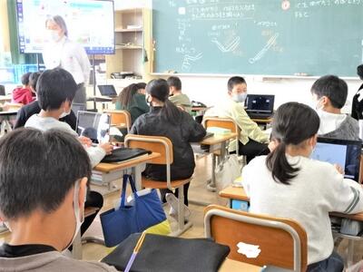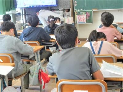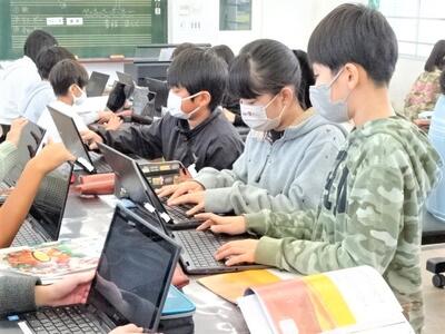 【3年生】今日は、パソコンの専門家を講師にお呼びして、3年生の各クラスでプログラミングの学習を行いました。講師の先生の進行でパソコン操作を進めて行きます。真剣な表情で取り組む姿が印象的でした。