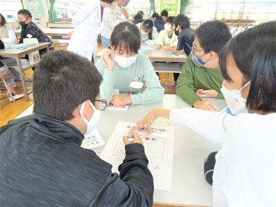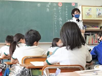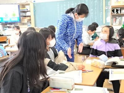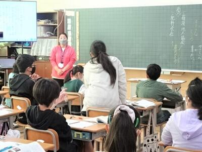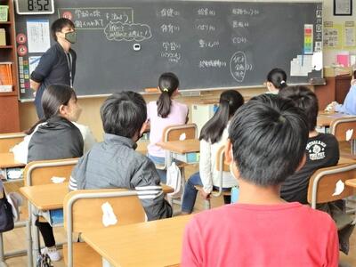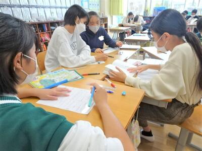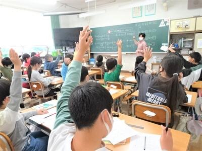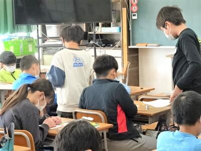 【5年生】1枚目の写真は、学級活動の時間に話し合いをしている場面です。「よりよい学校生活のために」という題材で話し合っています。これまでの生活で課題と感じたことは何か、高学年としてするべきことは何か、いろいろな観点から話し合い、そして考えていました。いろいろな考えがでて、高学年らしい姿が印象に残りました。