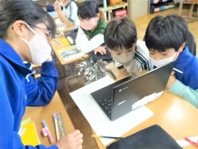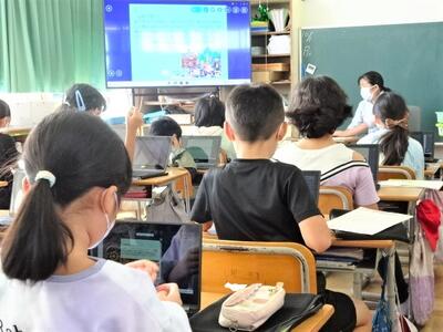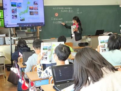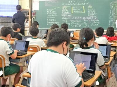 【4年生】1枚目の写真は、社会科の時間の一場面です。これまで「山あげまつり」について調べていたことを、ロイロノートのシートに一人一人がまとめました。今日はその発表の日です。共有した画面を見ながら、発表に聞き入っている子どもたちです。プレゼンテーションの力も高まっています。