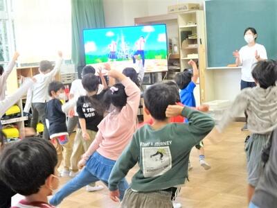 【1年生】1枚目の写真は、運動会の表現(ダンス)の練習の場面です。雨が降っていなければ、外で自分の位置を確認しながらの練習予定でしたが、今日は1年生全体でダンスや並び方の確認を行いました。見るたびに、ダンスの体の切れが良くなっています。