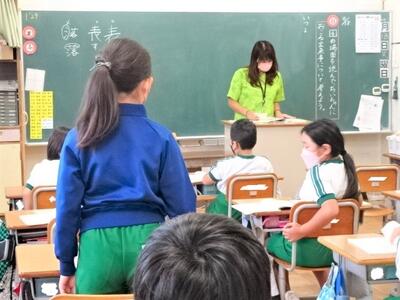 【2年生】国語の「お手紙」の学習も終わりに近づいてきました。今日は、3組で「お手紙」の音読発表会を行っていました。かえるくんやがまがえるくんになりきって台詞を読んでいきます。思わず聞き入ってしまします。