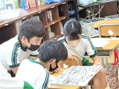【6年生】1枚目の写真は、過去の卒業アルバムを見て、いろいろな意見を交換している場面です。今日のめあては、卒業アルバムの計画を立てることです。いよいよ卒業アルバムの作成時期が近づいてきたのですね。思い出の残るアルバムにしてほしいですね。