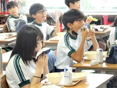 今日で1学期が終了します。10月4日からの給食を紹介します。なお、本日(10月7日(金))の給食ですが、材料の都合により、一部メニューを変更して提供させていただきました。