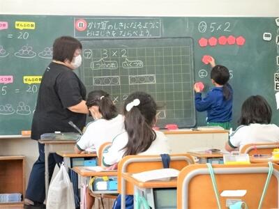【2年生】2年生の学習における一番の課題は、かけ算九九になります。かけ算は、日常生活においても必ず使うものです。いよいよ、2年生もかけ算の学習に突入しました。まずは、かけ算を使う場面を探しながら、かけ算の意味について考えていきます。