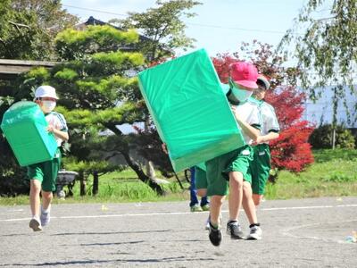 【3年生】運動会が近づき、練習の佳境を迎えています。3・4年生の合同の練習では、団体競技「上松タイフーン~新時代のまり入れ~」、ダンス「上松ファミリー」の練習を行いました。入場から演技まで、集中して取り組むことができました。