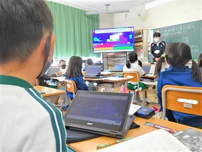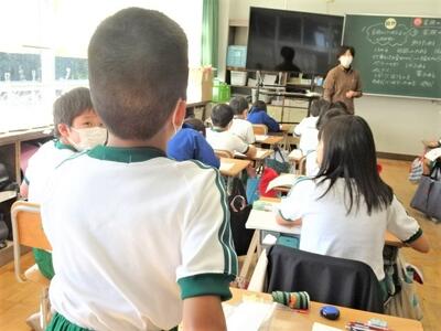 【4年生】今日は、パソコン関係の専門家をお呼びして、プログラミングの学習を行いました。今日は、日頃使用しているロイロノートを使った方法です。子どもたちは、話を聞き逃さないようにと、すごい集中力でした。