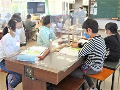 【3年生】図画工作で製作している「くるくるランド」も完成する児童が増えてきました。色とりどりに彩色したり、回る部分に飾りを付けたりと、様々な工夫をしています。子どもたちの想像力に、終わりはありません。