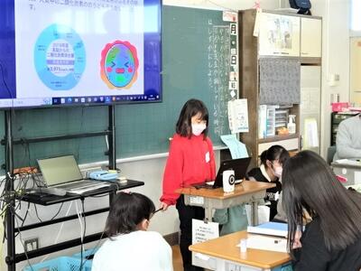 【5年生】1枚目の写真は、総合的な学習の時間の一コマです。「探ろう環境問題」という単元を設定しており、この後かなりの時間をかけて課題解決のための学習を進めていきます。今日は、課題を整理するために、環境問題の現状について調べたことを発表していました。