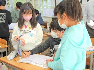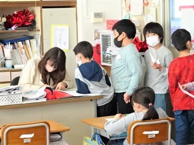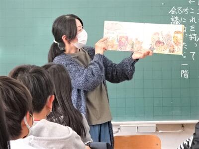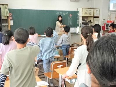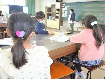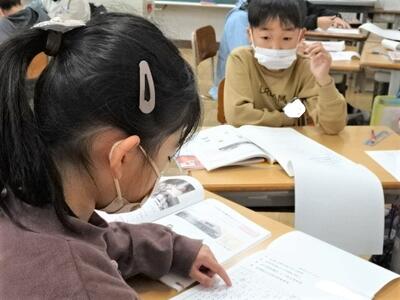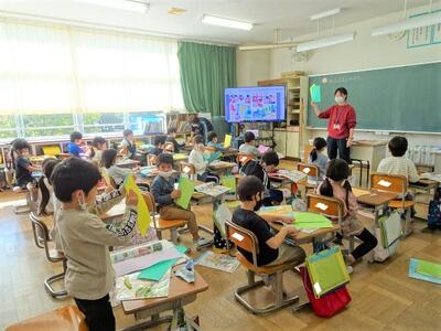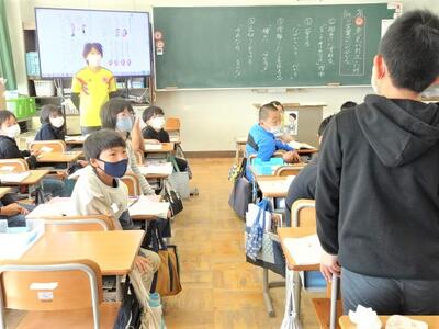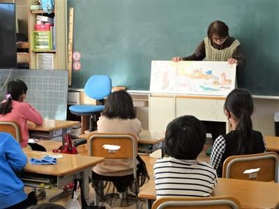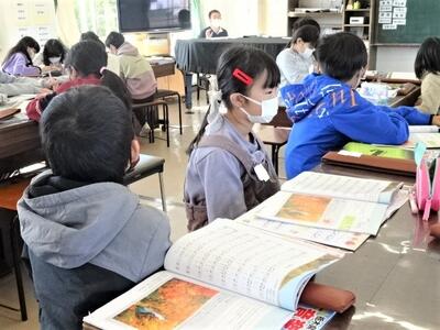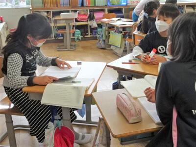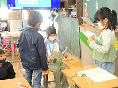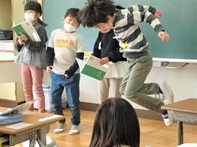 【2年生】国語の「お手紙」の学習も終わりに近づいてきました。今日は、3組で「お手紙」の音読発表会を行っていました。かえるくんやがまがえるくんになりきって台詞を読んでいきます。思わず聞き入ってしまします。