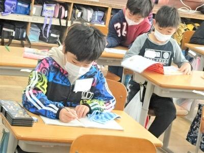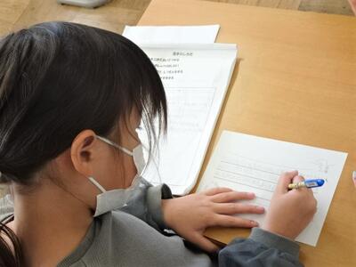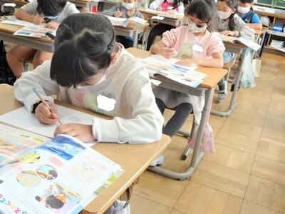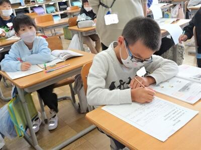 【3年生】1枚目と2枚目の写真は、27日(木)に社会科見学に行かせていただいた「なすの漬物の工場」の方に向けて、お礼の手紙を書いている場面です。下書きを書くと、先生にチェックをしてもらいます。気持ちを伝えるためにも、誤字脱字がないように、そして子どもたちの想いが伝わるようにしています。