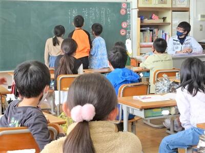 【3年生】1枚目の写真は、国語に時間の一コマです。「ちいちゃんのかげおくり」の学習が終わり、「修飾語を使って書こう」という学習に入りました。この学習で、文章の基本となる、主語・述語・修飾語がそろいます。しっかりと理解してほしい内容です。