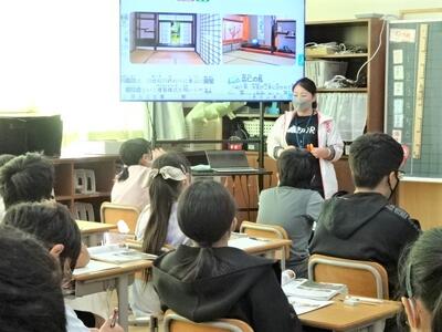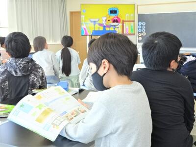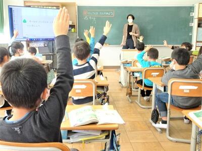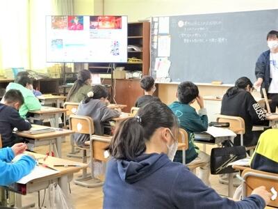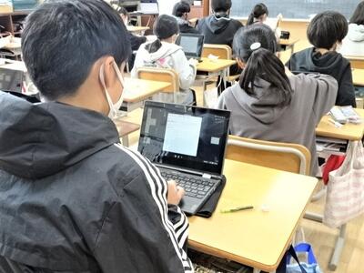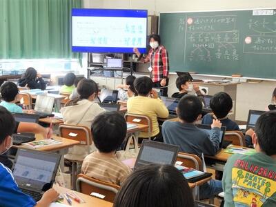 【4年生】今日は、パソコン関係の専門家をお呼びして、プログラミングの学習を行いました。今日は、日頃使用しているロイロノートを使った方法です。子どもたちは、話を聞き逃さないようにと、すごい集中力でした。