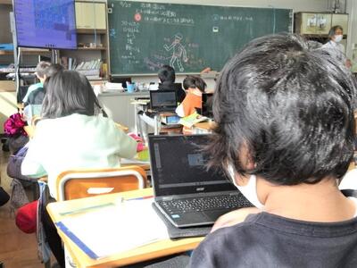 【5年生】1枚目と2枚目の写真は、社会科の「工業生産とわたしたちのくらし」の学習の様子です。今日は、オンライン工場見学を実施しました。自動車工業とつながって、自動車のできる様子や働いている方の想いや努力などについて知ることができました。たくさんの質問にも答えていただき、とてもよい学習になりました。