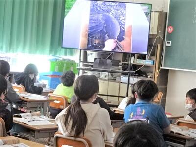 【4年生】1枚目と2枚目の写真は、理科の「ヒトの体のつくりと運動」の単元の学習の様子です。今日は、体の曲げられるところを、自分の体をさわったり、映像資料などを見たりしながら確認していきました。たくさんあることに驚いていました。