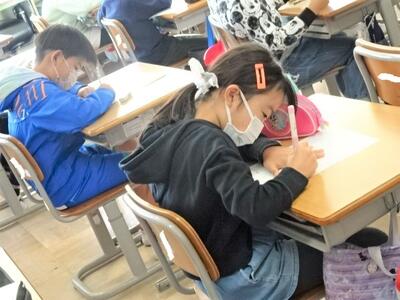 【4年生】1枚目と2枚目の写真は、学級活動の時間の様子です。今回は、11月に予定している「ありがとう集会」に向けて、日頃お世話になっている地域の方々に向けて、お礼の手紙を書く活動でした。書く前には、どんなことをしてくださっているかを振り返り、感謝の心を育みました。
