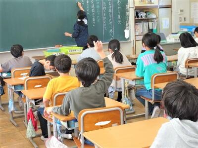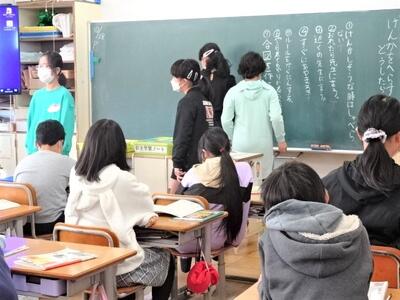 【4年生】1枚目の写真は、学級活動の時間の一コマです。転校してしまう友だちとのお別れ会を計画しているところです。この計画をもとにして、5時間目にお別れ会を実施しました。思い出に残る会になりました。