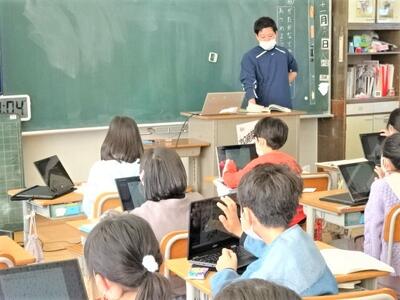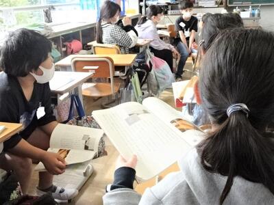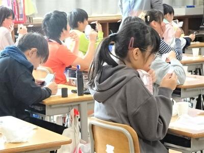 【5年生】1枚目の写真は、音楽の時間にリコーダーのテストをしている様子です。今の子どもたちは、楽器の扱いがとても上手で指遣いがとてもなめらかです。演奏曲は、「星笛」という曲でした。リズムに合わせて素敵な曲を聴かせてくれました。