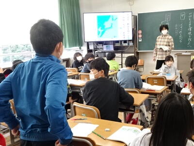 【6年生】1枚目と2枚目の写真は、外国語の時間の様子です。今日は「地球の生き物について調べよう」という単元の学習を行いました。生き物の暮らしについて、英語を使っていりろと調べていく学習になります。今日は、生き物の単語を学んでいました。