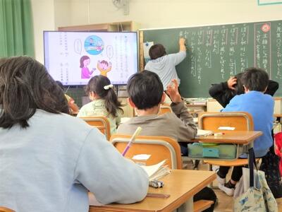 【1年生】1~3枚目の写真は、国語の時間に撮影した写真です。どのクラスも今は「かん字のはなし」の学習を進めています。1年生で習う漢字を読んだり書いたりできるようにしたり、習った漢字を使って文作りをしたりと、漢字に慣れ親しんでいっています。