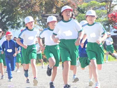 【5年生】1枚目の写真は、体育の時間の写真です。校内持久走記録会が、いよいよ来週に迫ってきました。5年生と6年生は、1000mを走ります。5年生にとっては、昨年の800mから、200m長くなりました。自分の記録を少しでも伸ばしたいと真剣に練習に取り組んでいます。