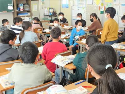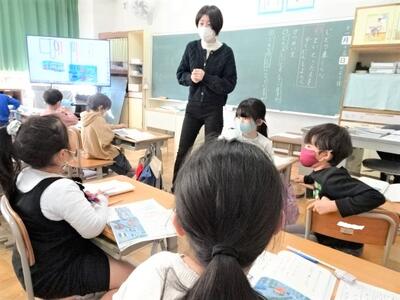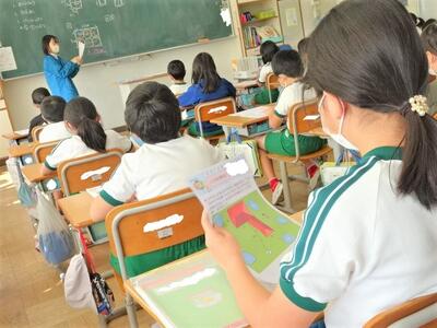 【3年生】1枚目の写真は、先日実施をしました農業に関する話を思い出しながら、講師の女性農業士の皆様に向けてお礼の手紙を書いている様子です。「田んぼのはたらき」「いちごのはなし」の紙芝居、とてもよい学習になりました。子どもたちは、感謝の気持ちを込めながら書いていました。