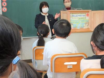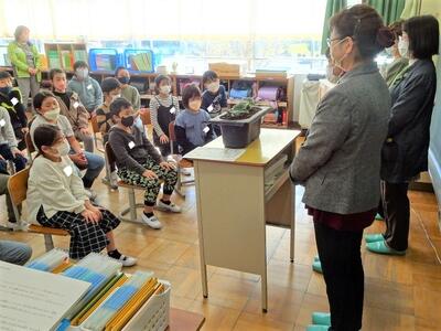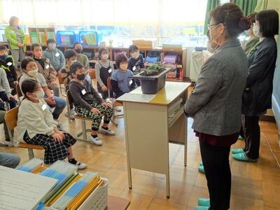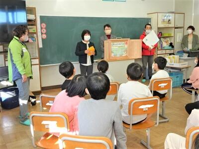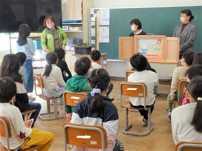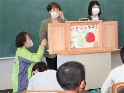 16日(水)に、塩谷南那須地区農業士会に所属されている女性農業士4名に来てただき、農業に関する話を聞きました。「田んぼのはたらき」と「いちごのはなし」という紙芝居を中心に説明をいただき、子どもたちの質問にも答えていただきました。