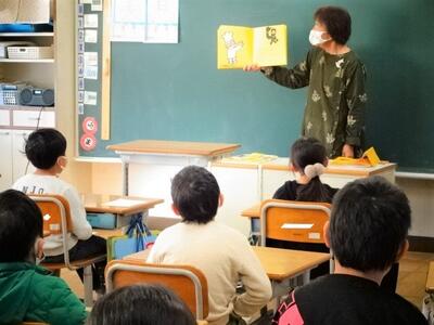16日(水)の朝の活動の時間に、読み聞かせボランティアの皆様方に来ていただき「読み聞かせ」を実施しました。本校教職員も参加しての読み聞かせです。子どもたちは、真剣に聞き入っていました。