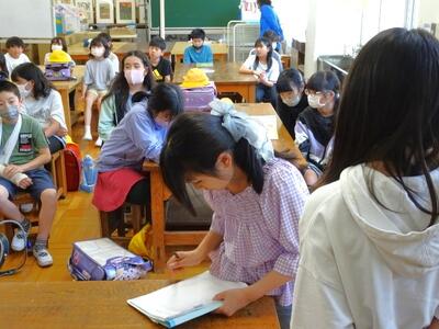 【5年生】1枚目の写真は、道徳の時間の様子です。「みんなといっしょに 前へ前へ」という教材をもとに、グループで話し合いを行っています。さすが5年生まとめるのも上手です。