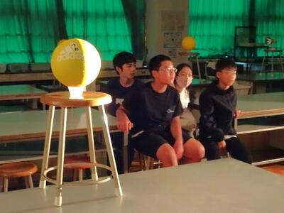 【6年生】1枚目と2枚目の写真は、理科の「月と太陽」の学習の様子です。今日は、太陽の光と月の位置による満ち欠けの様子を、グループごとに観察しました。