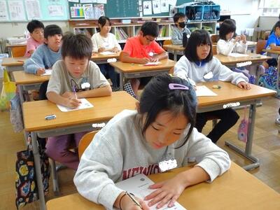 【4・5・6・7組】1枚目の写真は、QーUの質問に答えている様子です。一つ一つを確認しながら行いました。