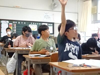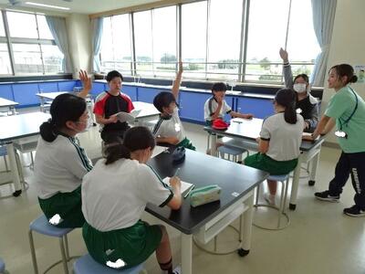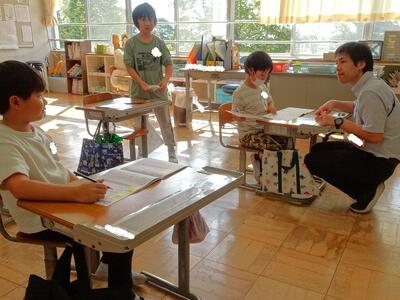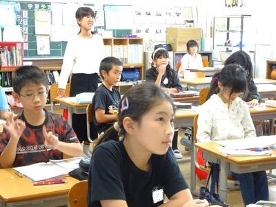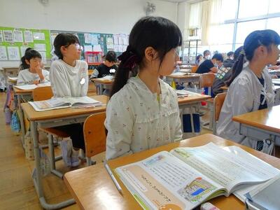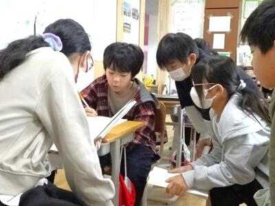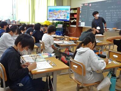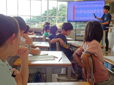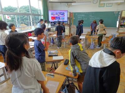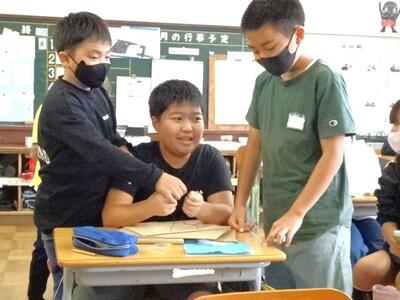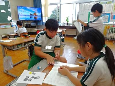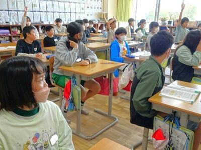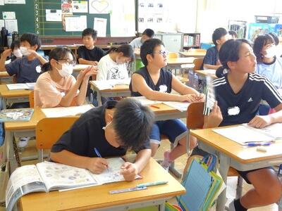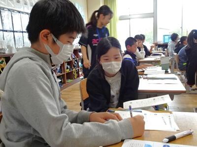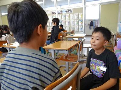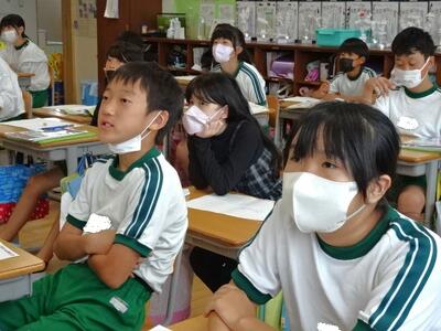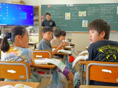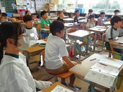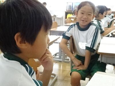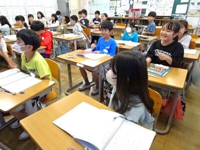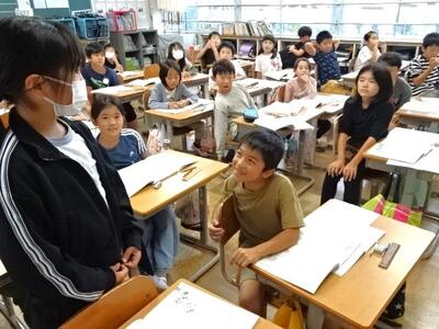 【6年生】1枚目の写真は、理科の「月と太陽」の学習の様子です。今日から、この新しい単元に入りました。月はどっちからどっちへ動くのかを経験を基にして話し合っていました。