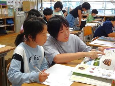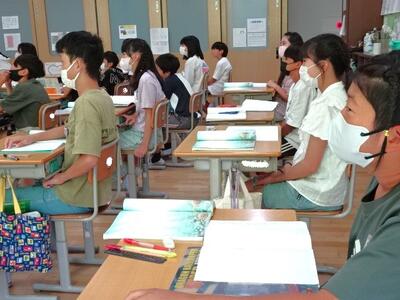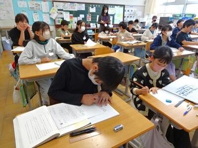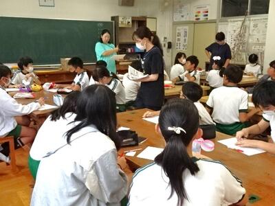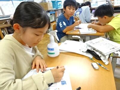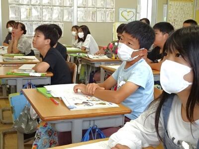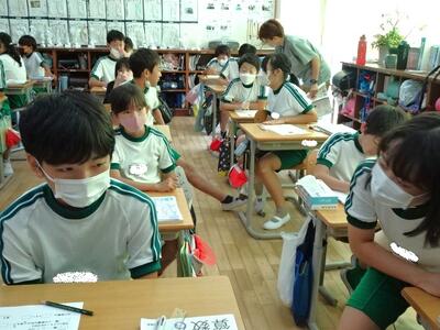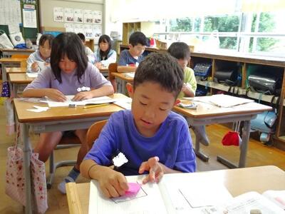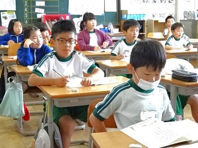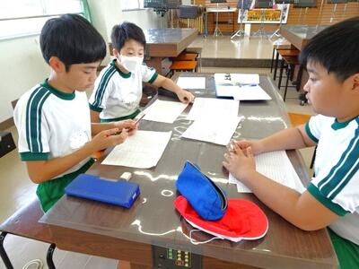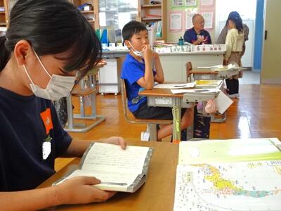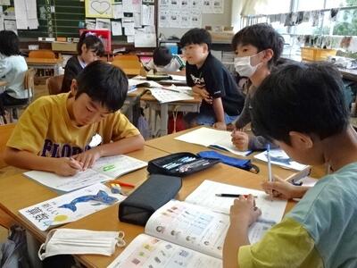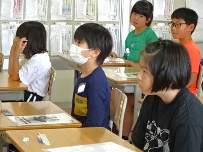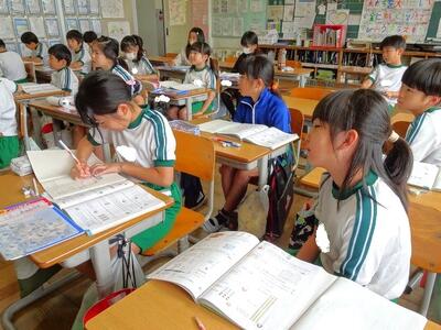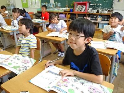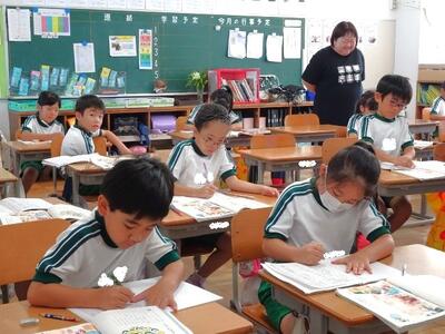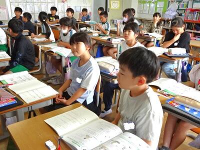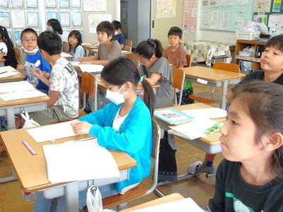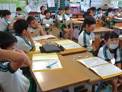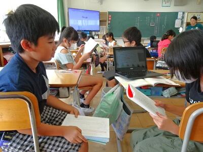 【3年生】1枚目の写真は、国語の「ちいちゃんのかげおくり」の学習の様子です。少し昔の時代背景なので、分からない言葉の整理をして、イメージできるように工夫しています。