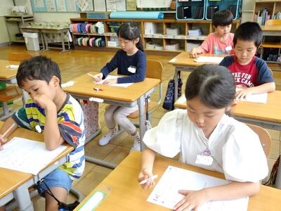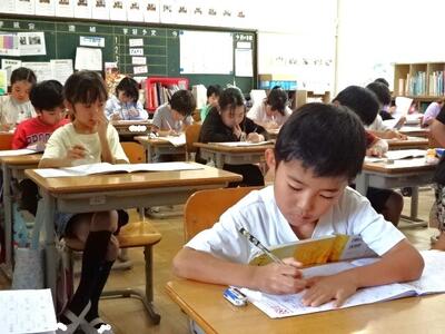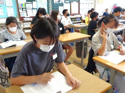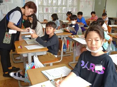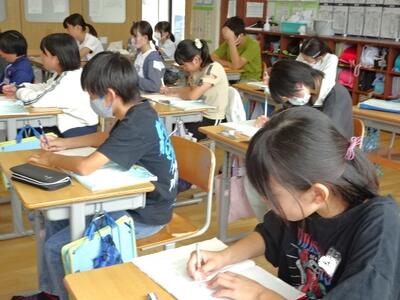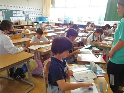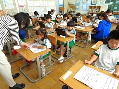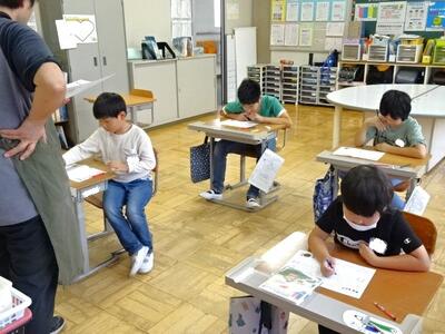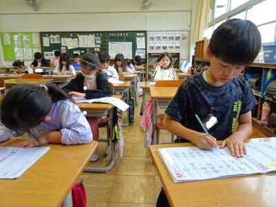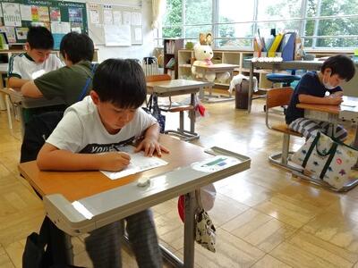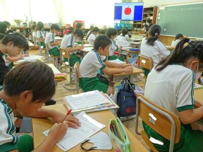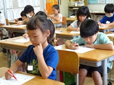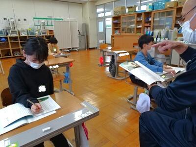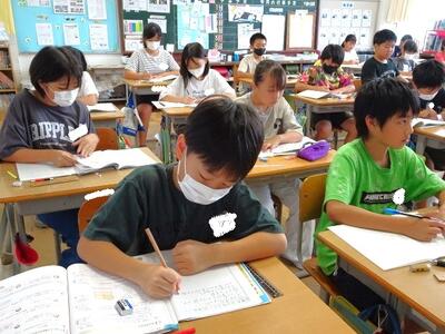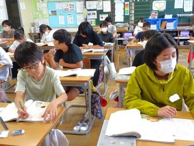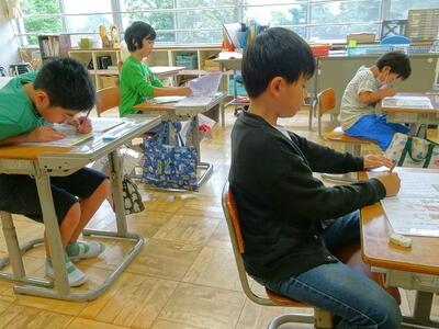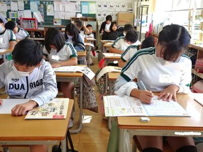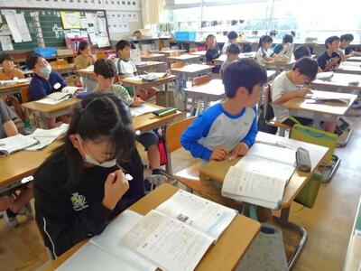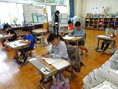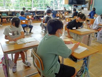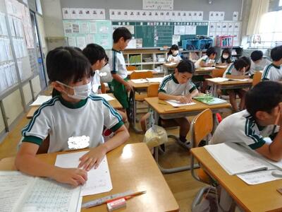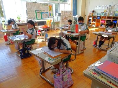 【4・5・6・7組】学習の成果を確かめるためのテストをしています。自分のペースで解いていきます。