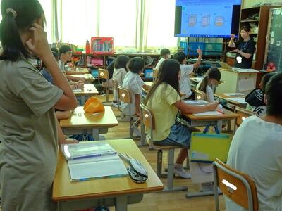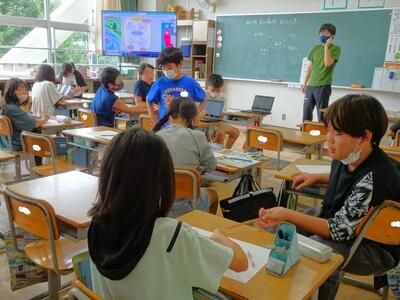 【4年生】1枚目から4枚目の写真は、算数の「およその数の表し方と使い方を調べよう」の学習の様子です。この単元は、コース別で学習をしている単元です。4つに分かれた教室での学習の様子です。