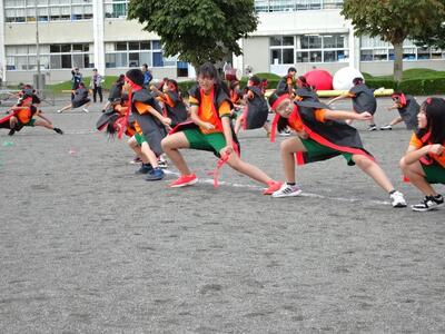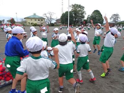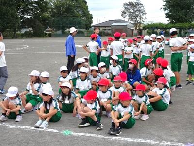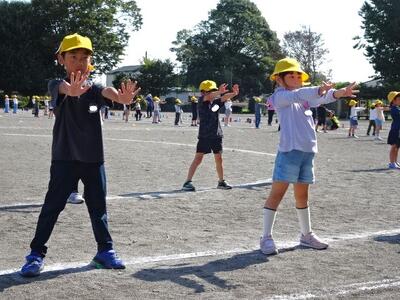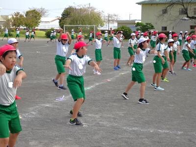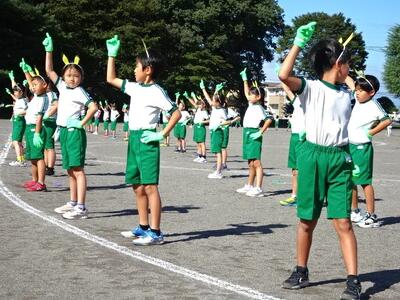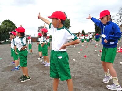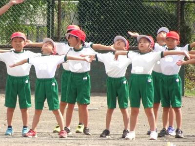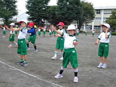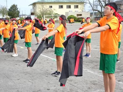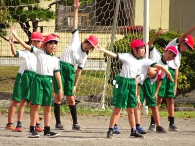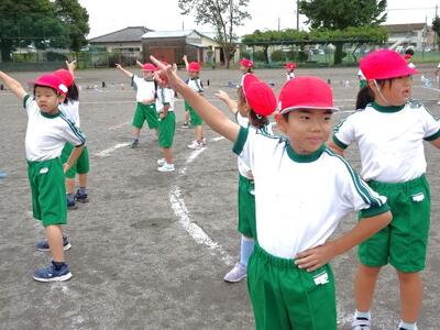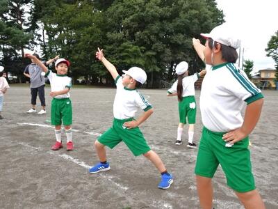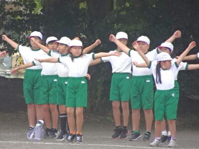 10月2日(水)に、運動会の全体練習を実施しました。開会式、ラジオ体操、そして応援の前半部分の練習です。
