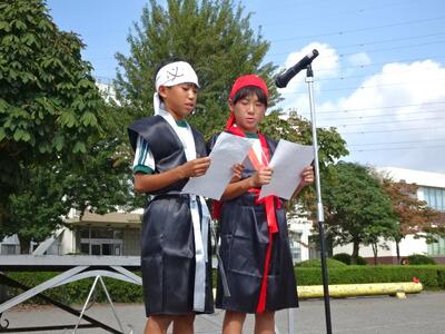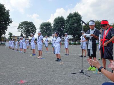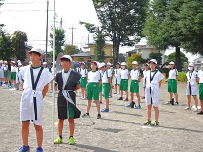 応援団の練習も、いよいよ校庭での、衣装を着けての練習になりました。