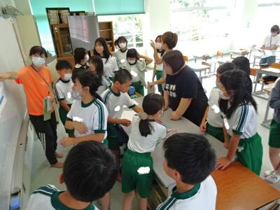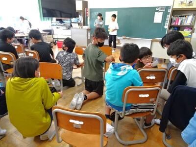 【5年生】1枚目の写真は、理科の「ヒトのたんじょう」の学習の様子です。今日は、赤ちゃんがお腹に入っているときの体験をしました.命の重みを感じながらの体験になりました。